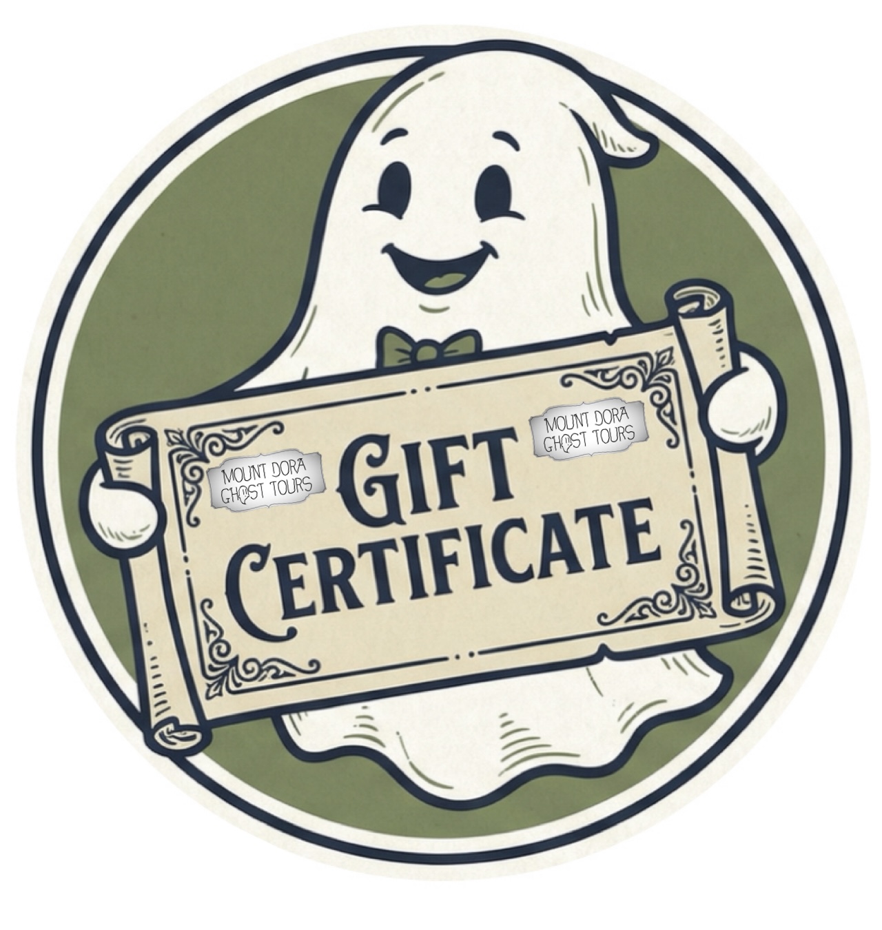 THE BEST GIFT IS A MEMORABLE EXPERIENCE. GIVE THE GIFT THAT KEEPS ON GIVING TO THE GRAVE WITH A MOUNT DORA GHOST TOURS GIFT CERTIFICATE! PRESENT THIS SPOOKTACULAR SURPRISE TO A PHANTASMIC FRIEND OR FAMILY MEMBER!